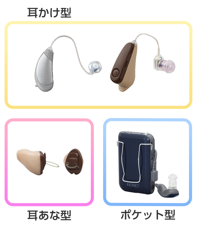 補聴器には、耳あな型、耳かけ型、ポケット型(箱型)などの種類があります。それぞれの価格は、おおよそ以下の通りです。